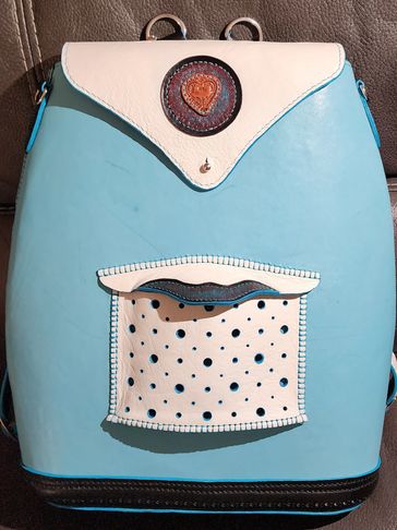 This is the "Jazz" leather backpack that can be recreated in a small, medium, or large, as shown in the photo.
